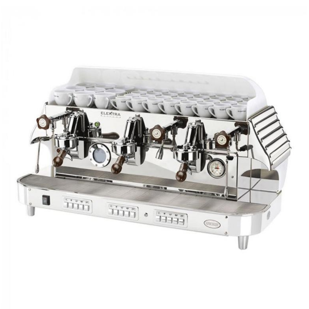 Elektra Barlume 3 Gruplu Espresso Makinesi, 1950'lerin retro tasarımını modern teknolojiyle birleştirerek, estetik ve işlevselliği bir arada sunar. Özellikle trendi takip eden kafe ve restoranlar için ideal bir seçenektir.